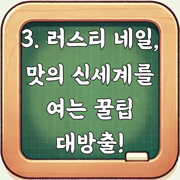 자, 이제 러스티 네일을 더욱 맛있게 즐기는 꿀팁들을 공개합니다! 메모 준비되셨나요?!